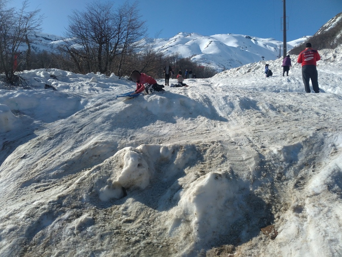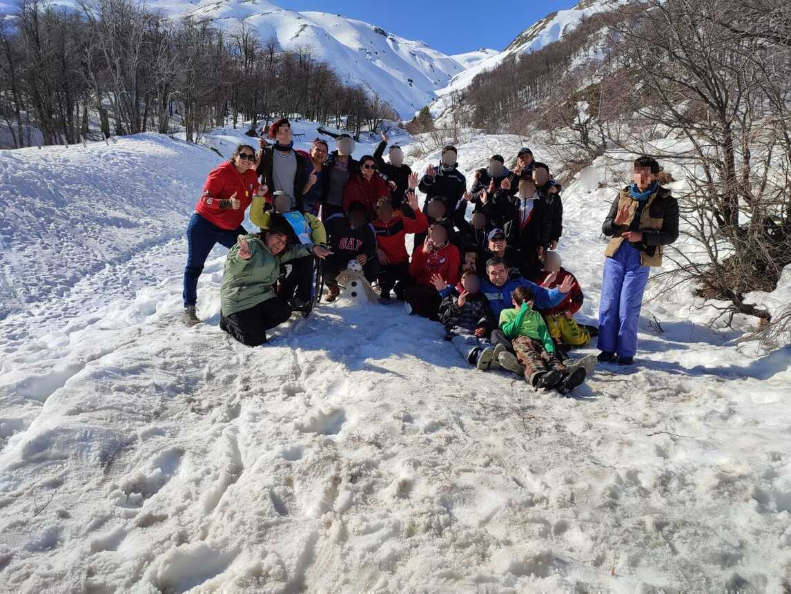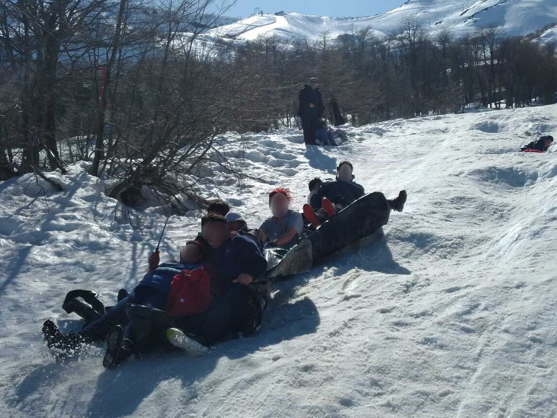 Los niños y adolescentes llevaron distintos implementos para jugar y entretenerse en la nieve y se las ingeniaron para realizar diversas actividades que incluyeron a uno de sus compañeros que debe desplazarse en silla de ruedas y que pudo disfrutar al igual que todos.