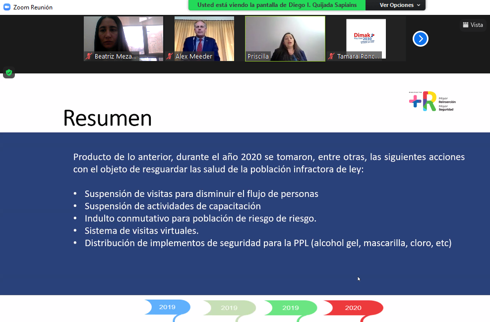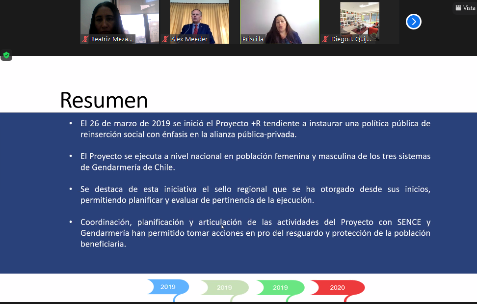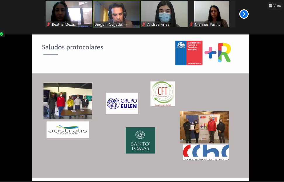 Como forma de conocer los alcances y avances de este proyecto, el jueves 2 de septiembre se realizó la actividad online “Encuentro Empresarial”, que contó con la presencia de Alex Meeder Thiers, SEREMI de Justicia y Derechos Humanos de Los Lagos; Lilian Peña Castillo, Directora Regional de Los Lagos del Servicio Nacional de Menores, Coronel Oscar Sanhueza Olavarría, Director (S) Regional de Gendarmería, María Teresa Sepúlveda, Directora de Operaciones Sociales de Fundación Ciudad del Niño, y María Isabel Reyes, Directora PIL Ciudad del Niño Los Lagos.